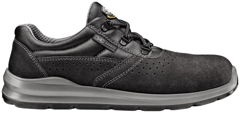 A Sir Safety System munkavédelmi cipő kifejezetten a biztonságos és kényelmes munkavégzés érdekében készült. Ez a modell ideális választás mindazok számára, akik munkahelyükön megbízható védelemre és optimális komfortérzetre vágynak, legyen szó ipari, építőipari vagy bármilyen olyan környezetről, ahol fontos a láb védelme. Főbb jellemzők: A munkáscipő felsőrésze prémium minőségű velúrbőrből készült, amely egyszerre biztosítja a tartósságot és a kellemes megjelenést. A perforációknak köszönhetően pedig folyamatos légáramlás biztosított, ami hozzájárul a láb optimális szellőzéséhez és a kellemes hőmérséklet fenntartásához. Ez különösen fontos hosszabb munkanapok során, hiszen megelőzi a túlzott izzadást és a kellemetlen szagokat, miközben megőrzi a cipő tartósságát és ellenállását a mechanikai hatásokkal szemben. Az acélból készült orrmerevítő a lábujjakat óvja meg az esetleges sérülésektől, melyek előfordulhatnak nehéz tárgyak leesése vagy ütközése esetén. Ez a robosztus védelem elengedhetetlen biztonsági elem minden munkavédelmi cipőben, garantálva, hogy a lábujjak ne szenvedjenek sérülést a munka során. Acél átszúrás elleni talplemeze hatékonyan akadályozza meg az éles tárgyak (például szögek, szilánkok) átszúrását, így megvédi a talpat az esetleges ártalmas behatásoktól. Talpa kettős poliuretán rétegből áll, mely kiváló tapadást és stabilitást biztosít különféle felületeken. Az SRC minősítés azt jelenti, hogy a talp mind acél-, mind kerámialapon végzett csúszásvizsgálaton megfelelt, így megbízhatóan csökkenti az elcsúszás kockázatát munka közben. Emellett az olajálló tulajdonság megakadályozza, hogy a talp anyaga károsodjon a vegyi anyagok vagy olajok érintkezése miatt, így hosszabb élettartamot és megbízhatóságot biztosít. Válassza ezt a munkavédelmi cipőt, ha nem szeretne kompromisszumot kötni a biztonság és a komfort között!