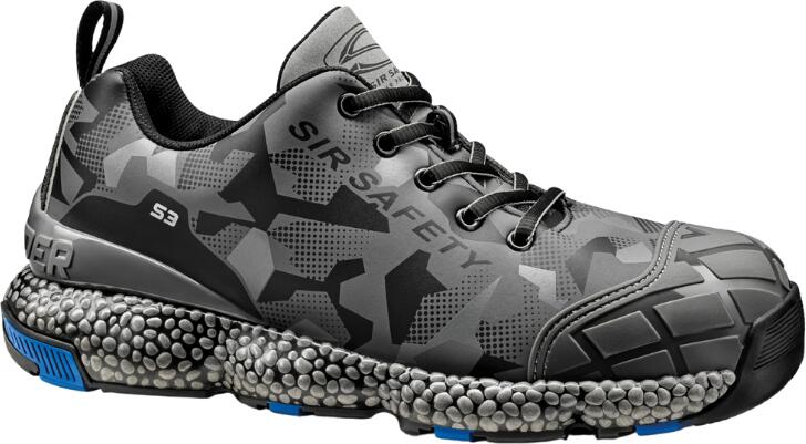 Sir Future termékcsaládhoz tartozó Sir Safety System munkavédelmi cipő ultradinamikus kialakítással, kompozit orrmerevítővel és középtalppal, kötött hálós felsőrésszel, mikroszálas felsőrésszel és fényvisszaverő betétekkel. A Responder® középtalp átfogja a talpat teljes hosszában és szélességében, rugalmasságot és kifinomult párnázást biztosítva. A mély, hosszirányú barázdákkal ellátott gumi külső talp elősegíti az egész talp rugalmasságát és kiváló tapadást biztosít minden típusú felületen. A sarokstabilizátor megakadályozza a láb kifáradását és javítja a láb stabilitását. A poliészter hálós bélés kiváló vízelvezető képességgel rendelkezik, köszönhetően a szövetnek és a nagy nedvszívó képességű szerkezetnek. EN ISO 20345 S3 SRC