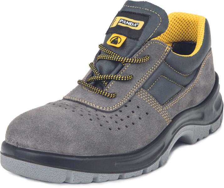 fémmentes ESD biztonsági félcipő, perforált velúrbőr felsőrésszel AIRNET® hálós béléssel csúszásbiztos, olaj-és üzemanyagálló PU külső talppal energiaelnyelő sarokrésszel, kompozit lábujjvédővel, és fémmentes, többrétegű poliészterből készült átszúrás ellen védő talpbetéttel tömege: 550g (fél pár 42 méret)