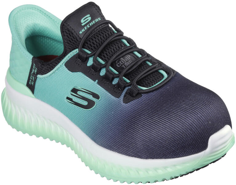 Válassza a Skechers Hands Free Slip-ins® Work: Tilido - Ombray cipőt kényelmes és biztonságos munkavégzéshez. Hálós és szintetikus felsőrésszel rendelkezik, elöl sztreccsfűzővel, egyedi Skechers Slip-ins® formázott sarokpanellel, exkluzív Heel Pillow sarokpárnával, összetett biztonsági lábfejjel és párnázott Skechers Air-Cooled Memory Foam® talpbetéttel.