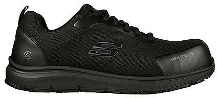 Szállítási idő: 1-2 nap Sportos kialakítású fűzős férfi Skechers munkavédelmi cipő, amely hálós és szintetikus felsőrésszel, párnázott Air-Cooled Memory Foam talpbetéttel, szénszálas kaplival és talpátszúródás elleni védelemmel rendelkezik.