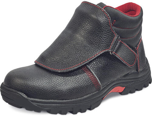 biztonsági hegesztőbakancs acél lábujjvédővel és átszúrás ellen védő köztalppal antisztatikus, csúszásbiztos, üzemanyag- és hőálló HRO (300°C) gumi talp energiaelnyelő sarok bőr felsőrész