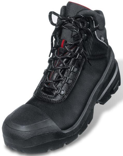 * robosztus, modern, magas szárú bakancs nagy igénybevételre, vízálló bőr felsőrész, teljes orrborítás, szellőző textil bélés, széles lábfej és orr-rész* könnyen futó fűzőrendszer, párnázott cipőszár és nyelv, acél lábujjvédő és átszúrás elleni talplemez* antibakteriális, bőrsemleges, kivehető antisztatikus talpbetét, illetve uvex anti-twist integrált saroktámasz, nagy oldalstabilitás és csavarodás elleni védelem* uvex softgrip könnyű, olaj és benzinálló, szilikonmentes, kétrétegű PUR talp, puha közti bélés