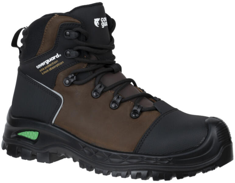 Az X-CLAW ROBUST teljes színbőrből készült biztonsági védőbakancs intenzív kültéri munkákhoz. Az orron (SC) és a sarokrészen található megerősítések védelmet és tartósságot biztosítanak. Az X-CLAW ROBUST nedves környezetben való használatra lett tervezve. Az X-CLAW mindenekelőtt egy egyedi talp, amely tapadást, stabilitást és tartósságot kínál: Mély, fordított mintázatú barázdái laza és egyenetlen felületeken is kiváló tapadást nyújtanak. Hátsó platformja és keresztirányú barázdái (LG) megakadályozzák a a megcsúszás vagy a leesés kockázatát, még létrákon történő munka esetén is. Kopásjelzője és a PU minősége szintén hozzájárul a talp tartósságához. A talpba integrált betét magasszíntű ütéselnyelést biztosít és megakadályozza, hogy a rezgések hatással legyenek az ízületekre. A védőbakancs karbon orrmerevítővel és textil talplemezzel rendelkezik, amely teljeskörű védelmet nyújt a jellemző mechanikai kockázatok hatása ellen. A bokabetét (AN) extra védelmet biztosít a bokának a külső mechanikai hatások ellen. A puha, párnázott nyelv, a szártető és az ortopédiai jóváhagyással rendelkező talpbetét mind hozzájárul a lábbeli kényelméhez.